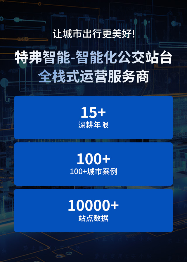 特弗智能,全产业链服务模式,从研发、设计到售后,一站式服务,避免多主体协调难题;行业中规模出众的公交站台生产线与智能化工厂,灵活应对不同应用需求;15 年丰富项目经验,从容应对各类复杂场景;7*24 小时售后服务保障,守护每一份信赖。